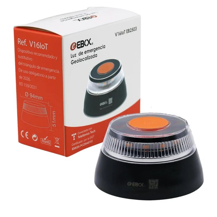 EBOX Luz Emergencia V16 Homologada DGT con Geolocalización – Baliza Conectada DGT 3.0