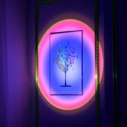 Efecto visual tipo puesta de sol o arcoíris: proyección de luz circular en pared, techo o suelo.