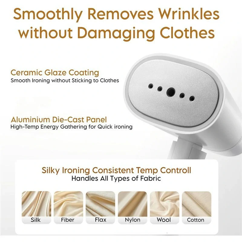 Elimina las arrugas de tu ropa en segundos con esta plancha de vapor portátil de 1300W, ideal tanto para uso vertical como horizontal. Su potente salida de vapor continuo penetra las fibras del tejido dejando tus prendas suaves, frescas y sin necesidad de tabla de planchar 💨✨.